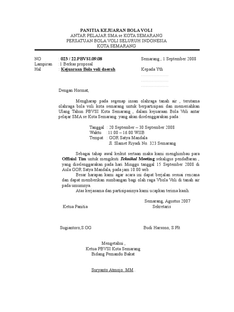 Berdasarkan surat dari panitia turnamen bola voli koramil cup nomor b01x2013 tanggal. Ebook reasonably priced flights by way of comparing 650 airways. Contoh Surat Undangan Volly Miegames.
